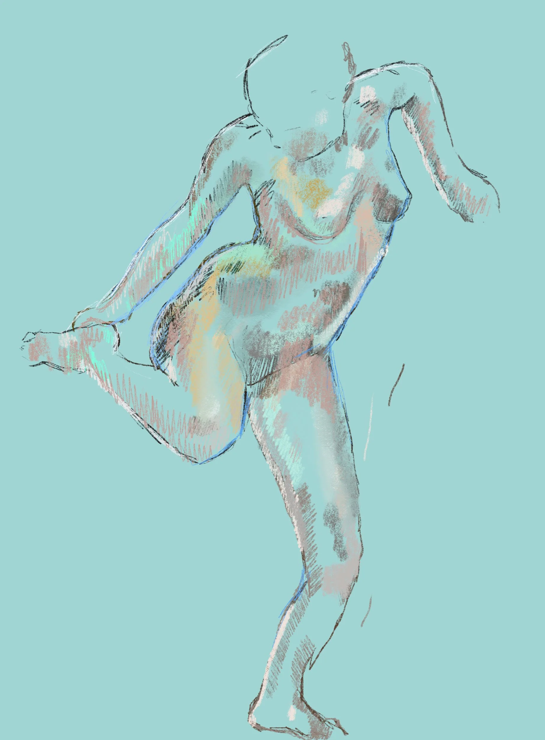 Her studies focused in a precise, Ingres-inspired line. Observed classical and Renaissance art, learning the tonal richness and compositional structure of the masters.
